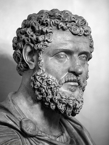Septimio Severo continuó guerreando, y aun durante los tiempos de paz, su labor para legislar y administrar el Estado fue incesante. Quiso arrogarse el derecho de ser considerado hijo de Marco Aurelio para designarse así heredero de los Antoninos. Pero al final se resignó a convertirse en el tronco de una nueva y prometedora estirpe. *