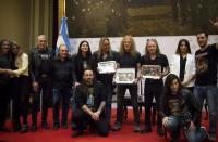 Luego del discurso la diputada Donda explicó el porqué de este reconocimiento institucional, dando lugar a la entrega de las placas. Cabe aclarar que, si bien el orden de los factores no altera el producto final, en primer lugar recibió su placa el señor Nicko Mc Brain, en segundo lugar lo hizo el señor Janick Gers y, por último, el señor Bruce Dickinson.